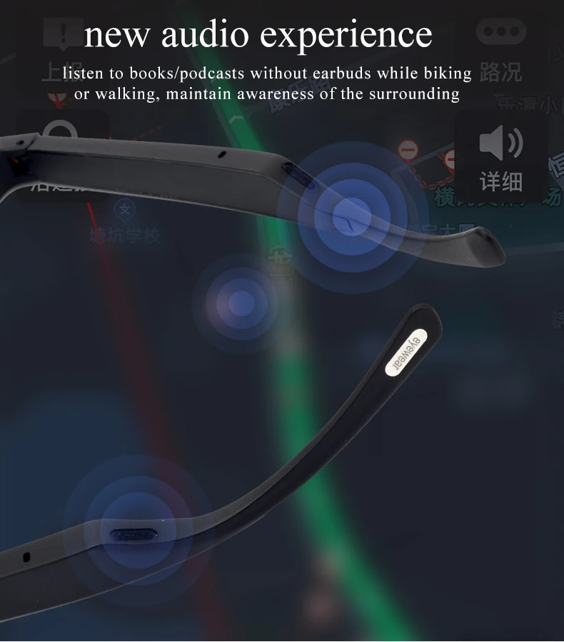 phone or smart devices, search Bluetooth name:eyewear plus, click to connect it.