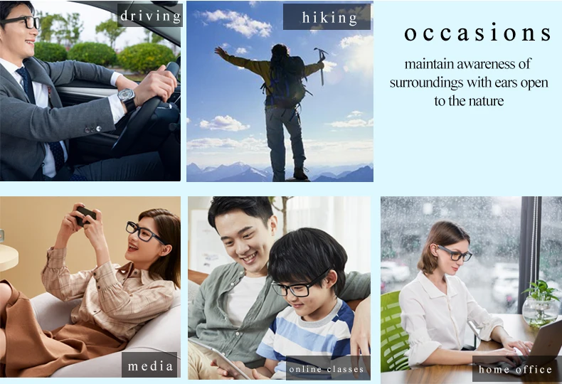 control area on the right temple for 3 seconds to turn it on. By hearing ”Power on”, then accompanied with ”Pairing”, your device