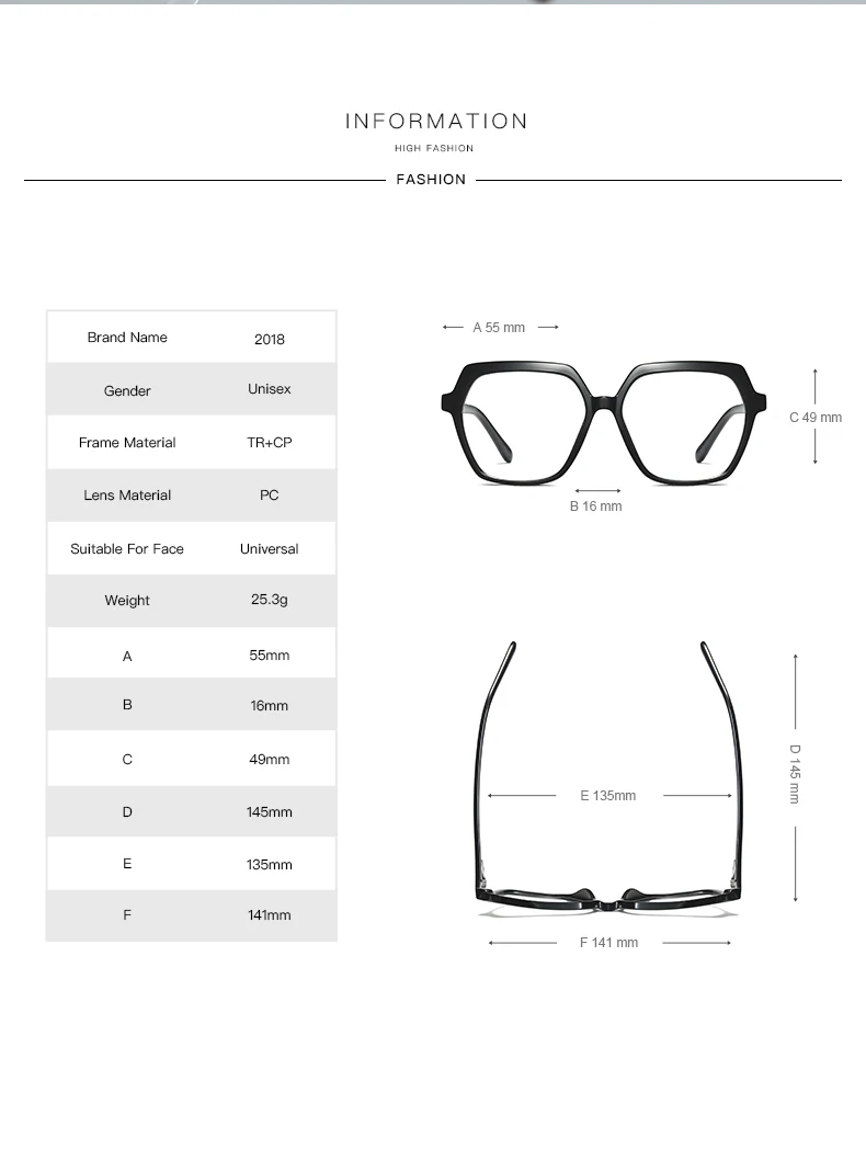 Be the first to review “Big Frame Vintage Myopia Eyeglass Frames New Transparent Brown Flat Lens Eyewear Computer TR90 Women Blue Light Blocking Glasses”