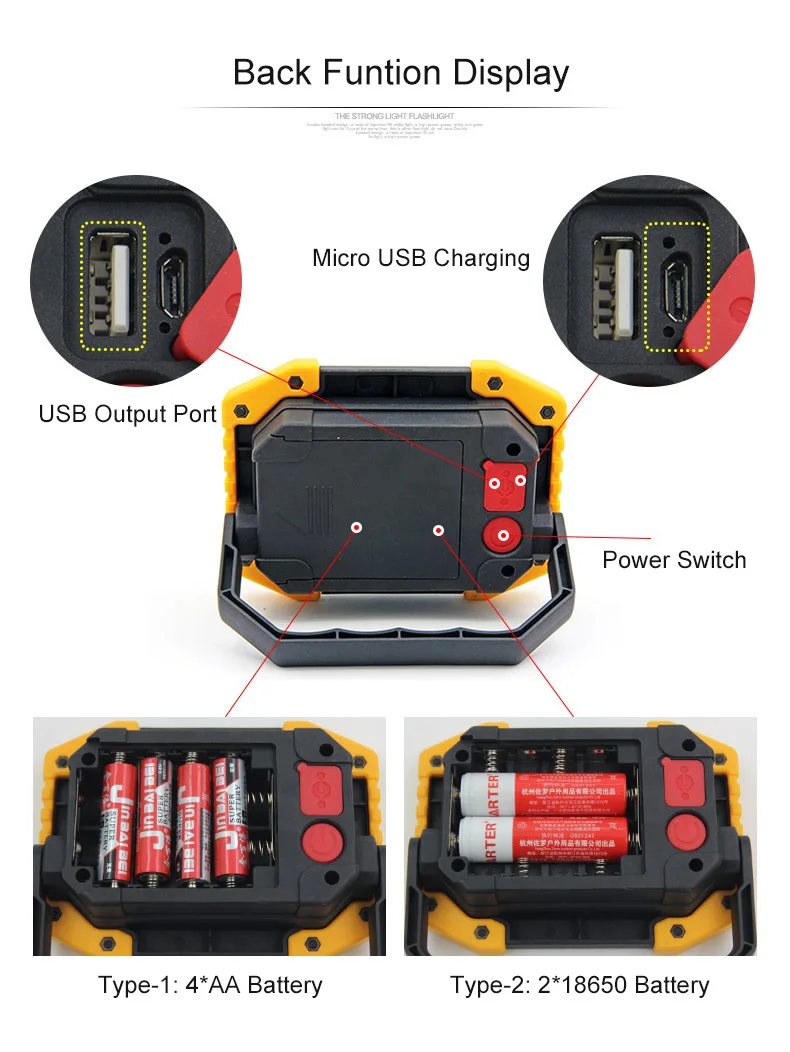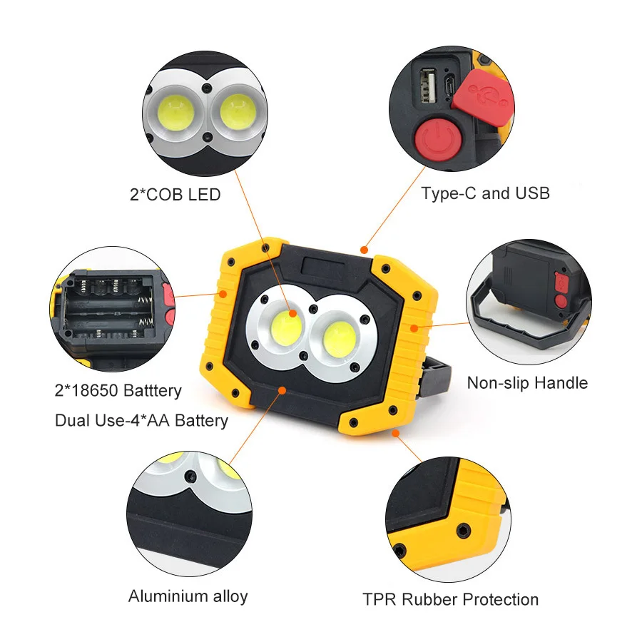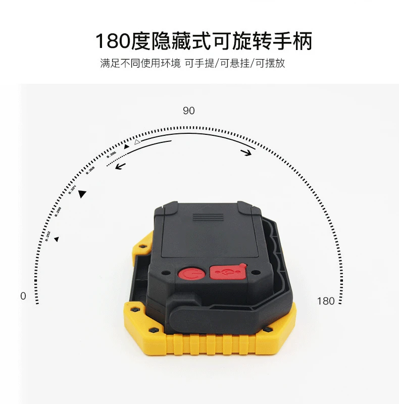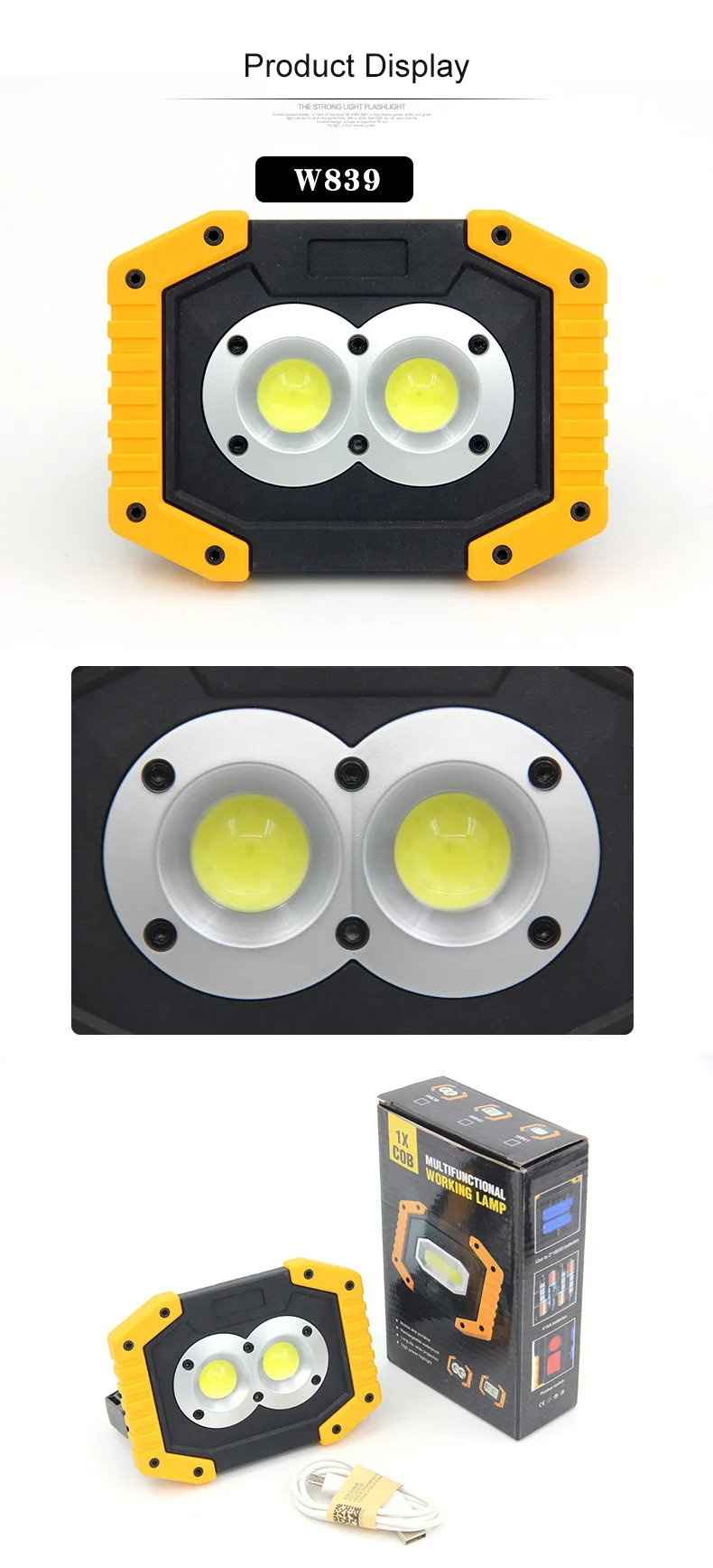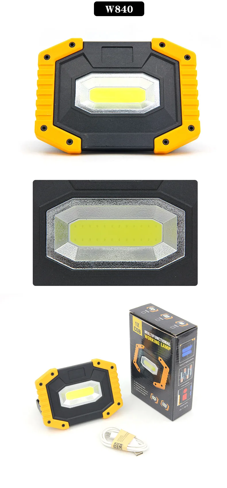 【Super Bright & Power Saving】30W handheld portable lighting, 1500 Lumen, replace 200W traditional halogen bulb by 30W COB LED and save 80% on electricity bill of lighting 【3 Modes & Waterproof】Press the switch on button turn on the rechargeable cob work light: High, Low, Strobe Brightness Mode. IP65 Waterproof rating, ensure the led work light rechargeable works fine in rainy days 【LED Work Lights Portable & Flexibility】Because the mechanics light adjustable is cordless. with a 180 degree adjustable lamp stand. So you can put it in anywhere just you like. led work light hanging on truck or hand held. Even on the ground, in the basement, garage or garden at night 【LED Work Light Rechargeable & Battery Powered】Powered by rechargeable batteries(included), equipped a USB cable allows for quick and convenient charging. Also charge your phone and other devices in emergency 【Work Light for Mechanics Widely Used】Camping, Hiking, Fishing, Barbecue, Car Repairing, Truck, Shop, Exploring and more Outdoor Activities