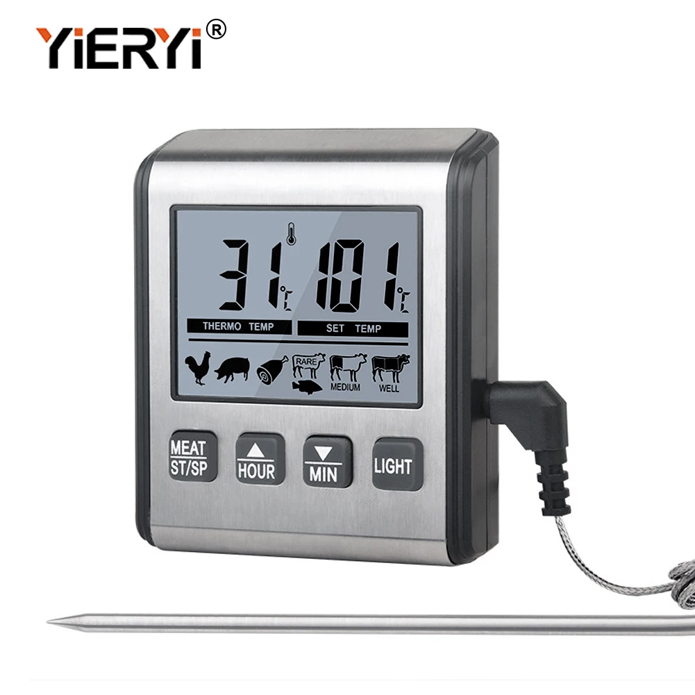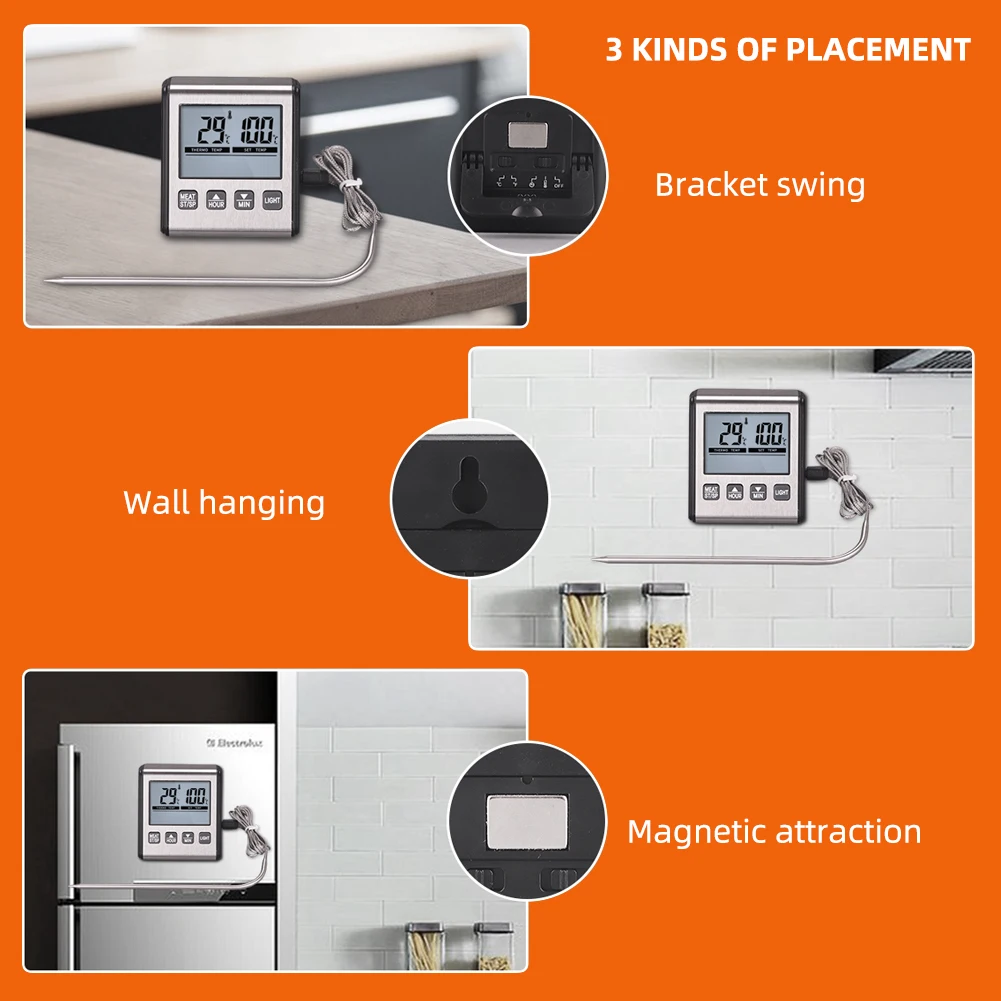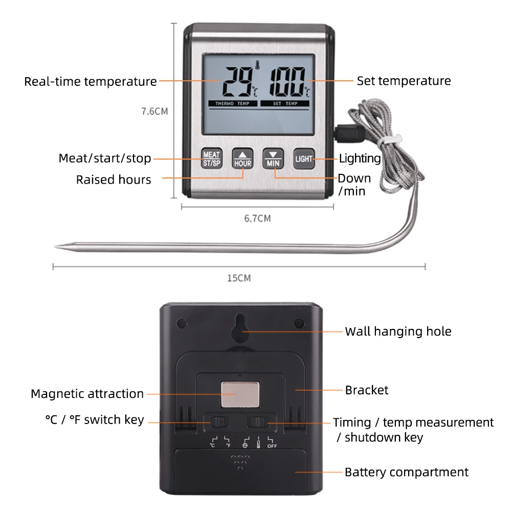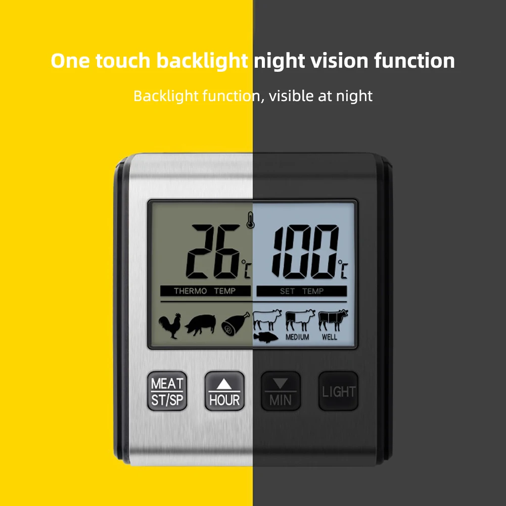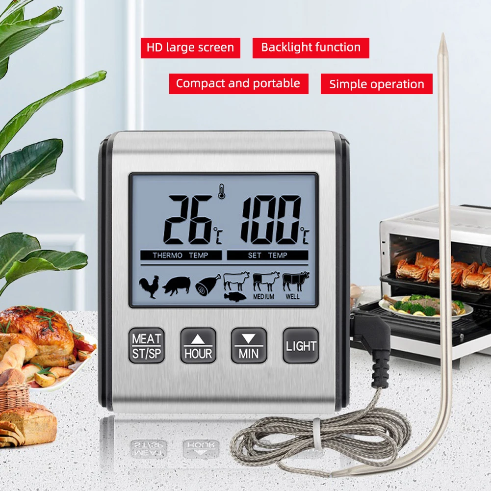 Digital LCD Backlit Display Stainless Steel Probe Food Cooking Meat With Timer Alarm Thermometer