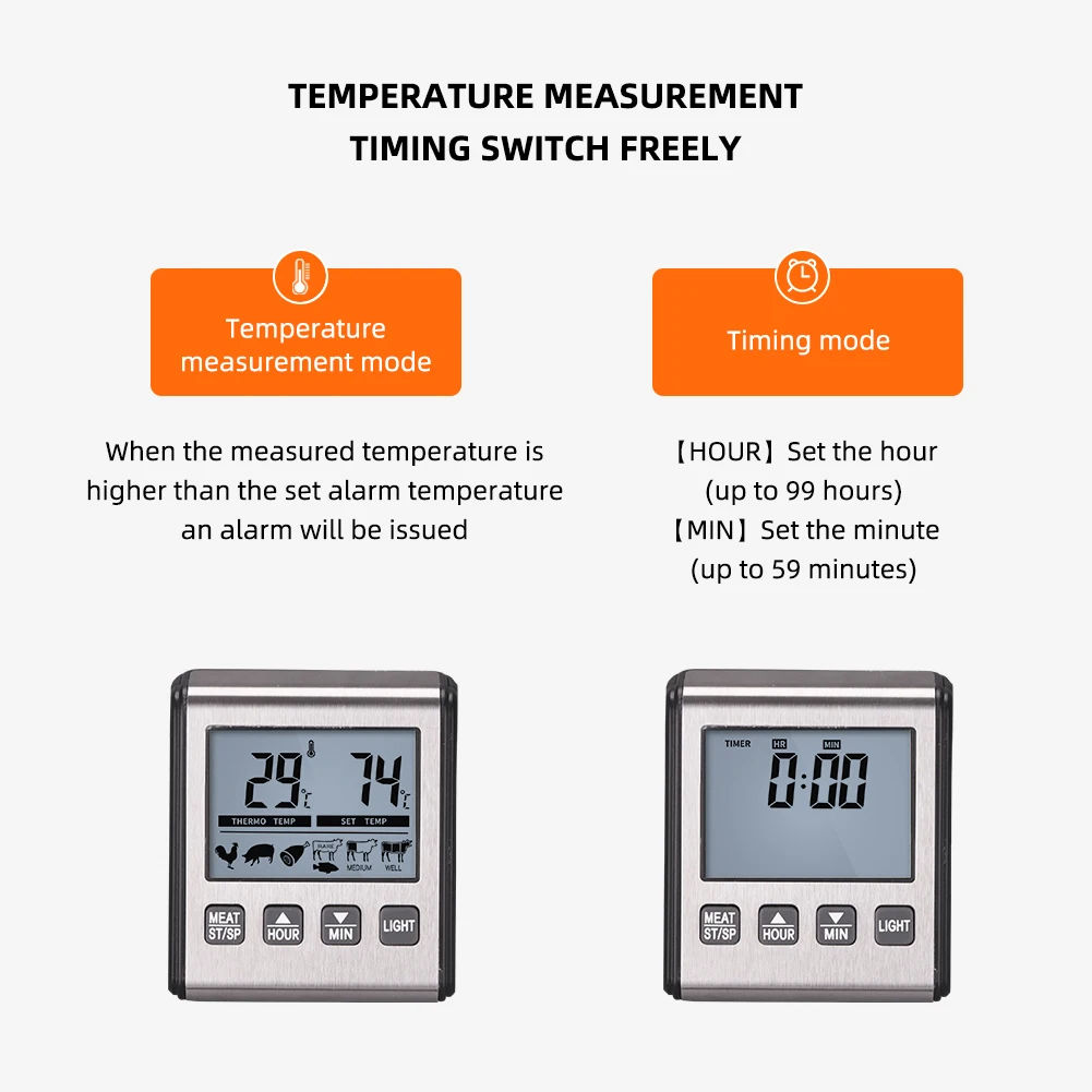 Oneplace - Best Selling Plateform Digital LCD Backlit Display Stainless Steel Probe Food Cooking Meat With Timer Alarm Thermometer – One Place