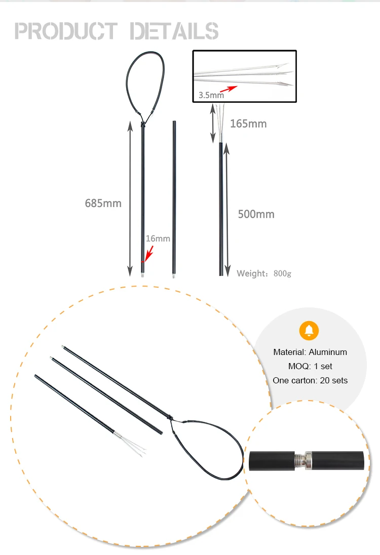 Spearfishing Aluminum Sling Pole Spear 5 Tips Set