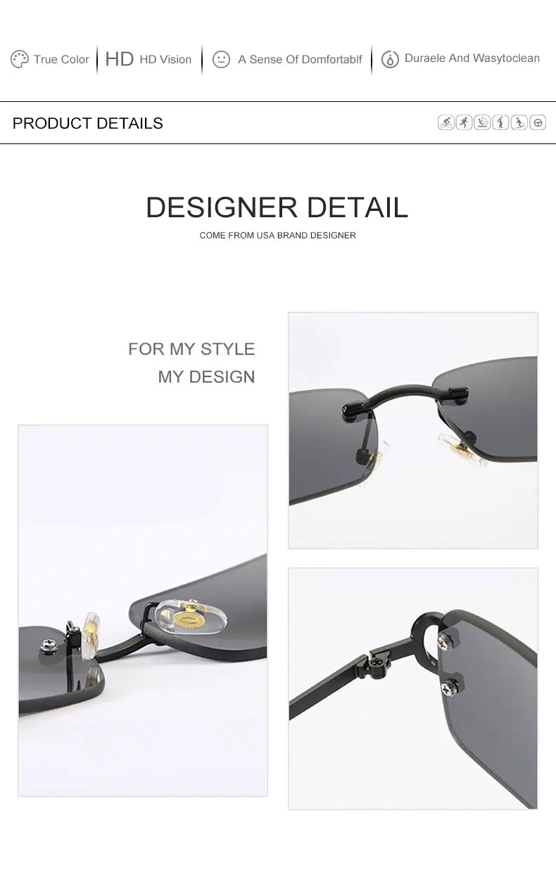 Oneplace - Best Selling Plateform HBK Square Retro Eyewear Rimless Luxury Gradient Sunglasses for Women Men on Lens Outdoor Parties Vacations Travel – One Place