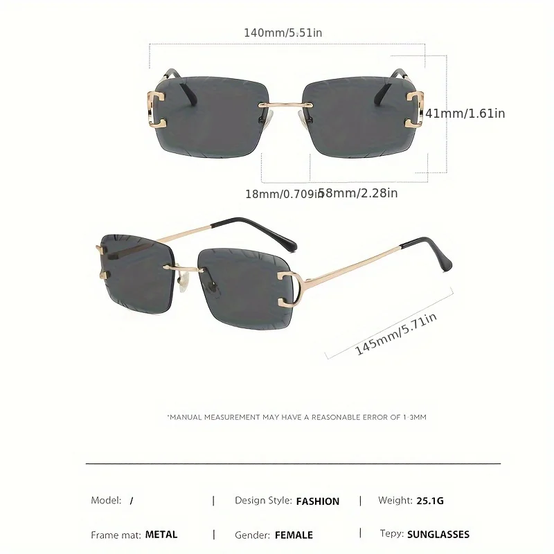 HBK Square Retro Eyewear Rimless Luxury Gradient Sunglasses for Women Men on Lens Outdoor Parties Vacations Travel