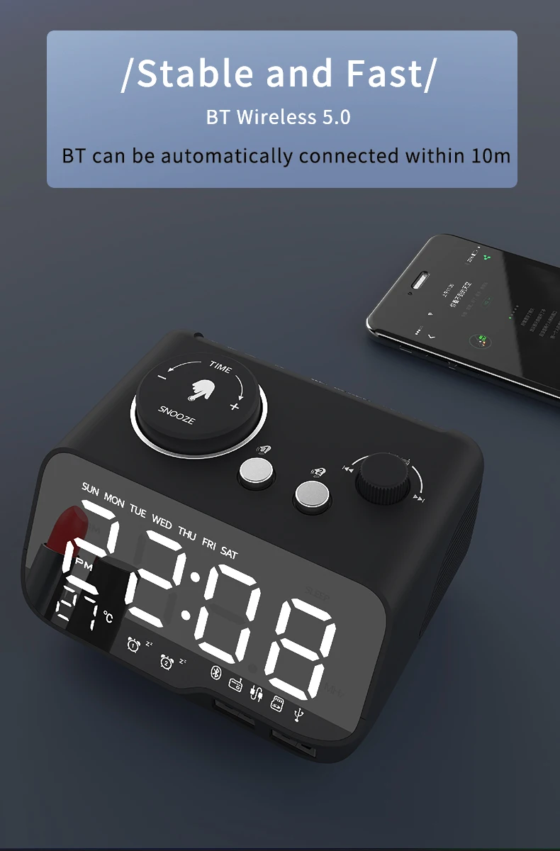 Be the first to review “M9 5W Bass Alarm Sound Digital Bedside Sleep Alarm Clock Radio for Bluetooth Speaker Desk Charger in Blue for Hotels” Cancel reply