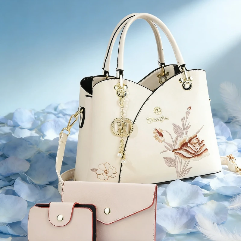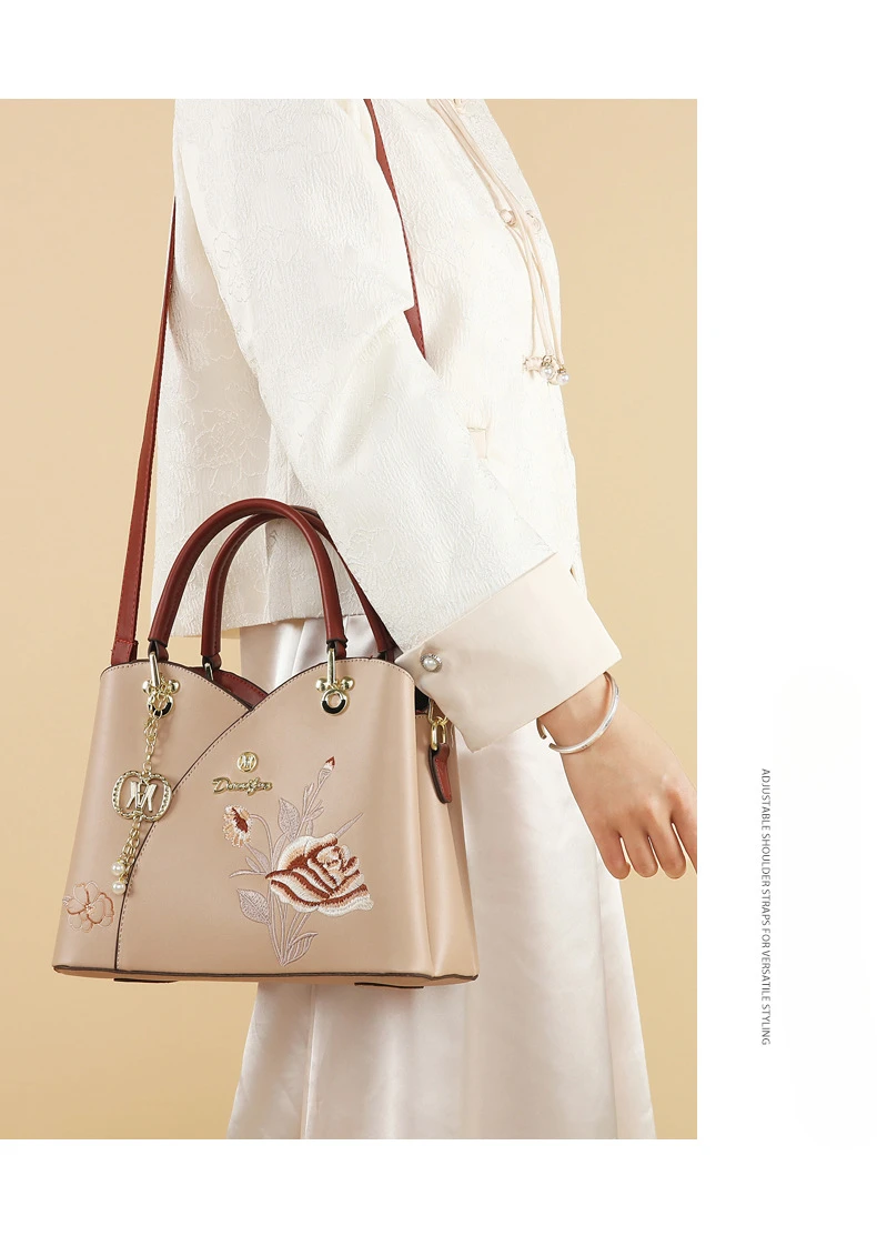 Mother’s Day gift: a bag for mom,Carnation Embroidered Handbag Beautiful tote bag for commuting,Lightweight, large-capacity thre