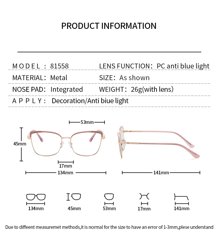 Be the first to review “MS 81558 Stylish Large Frame Women’s Metal Glasses Block Blue Light Shiny Frames Designer Eyeglasses Optical”
