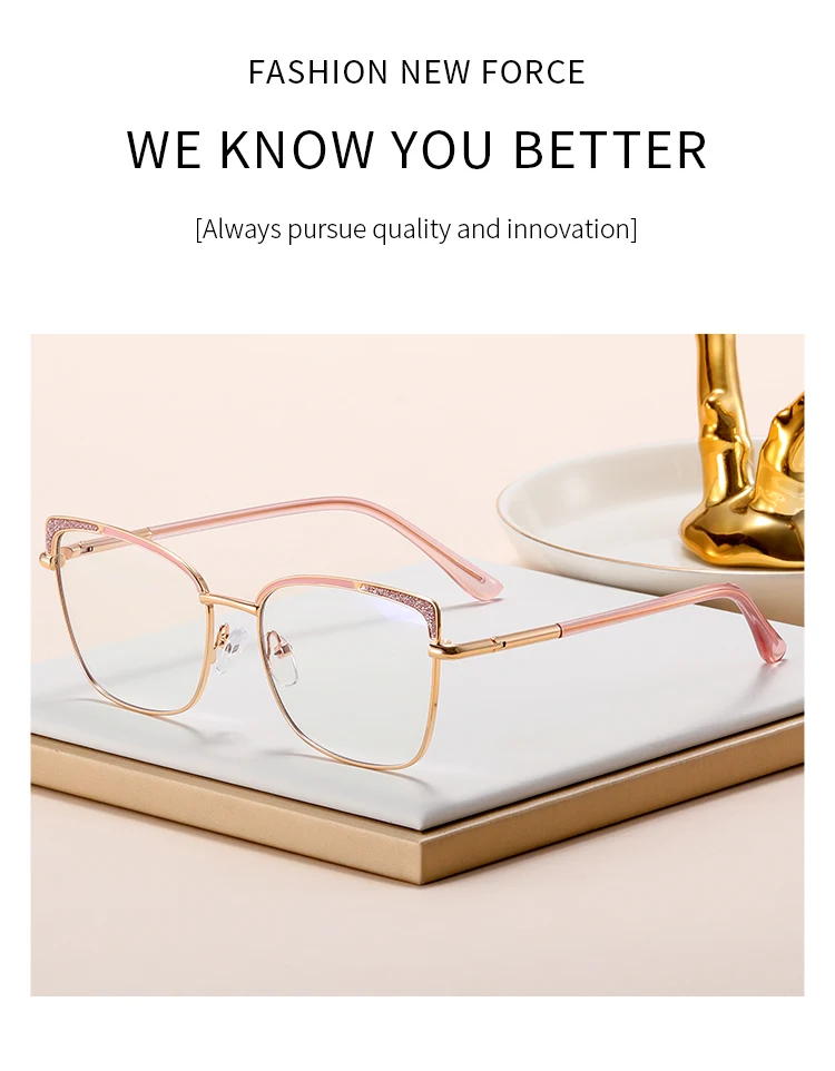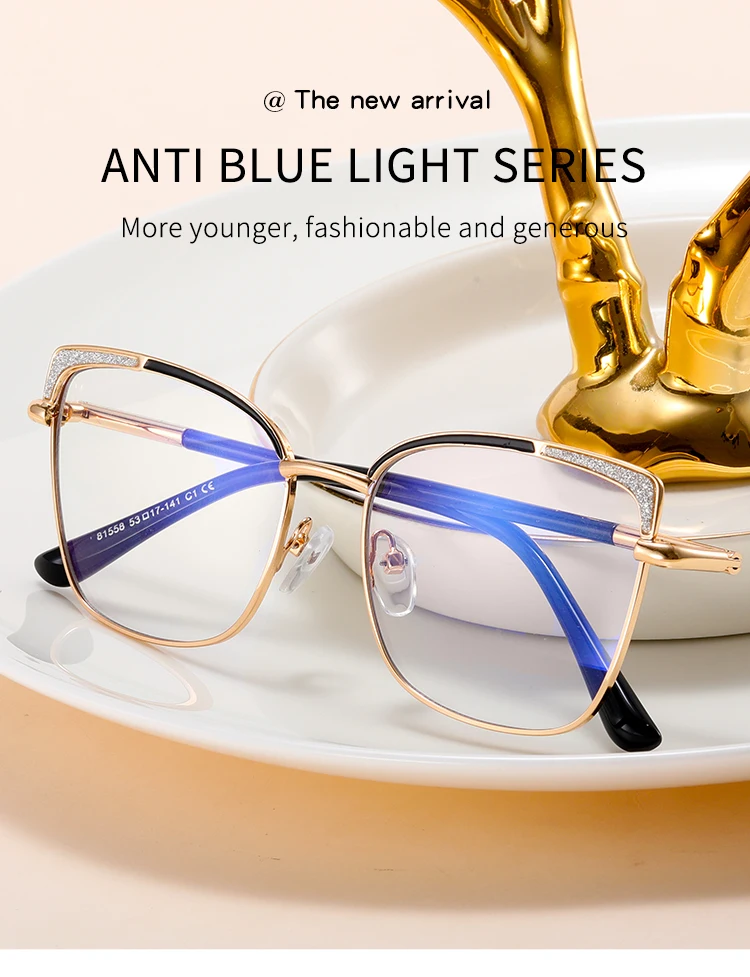 MS 81558 Stylish Large Frame Women’s Metal Glasses Block Blue Light Shiny Frames Designer Eyeglasses Optical