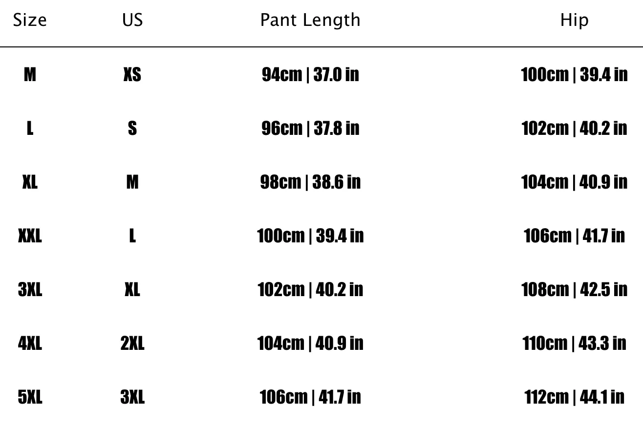 Asian M/US XS 50-57.5kg, Asian L/US S 55-62.5kg, Asian XL/US M 62.5-70kg, Asian 2XL/US L 70-77.5kg, Asian 3XL/US XL 77.5-82.5kg, Asian 4XL/US 2XL 82.5-90kg, Asian 5XL/US 3XL 90-95kg