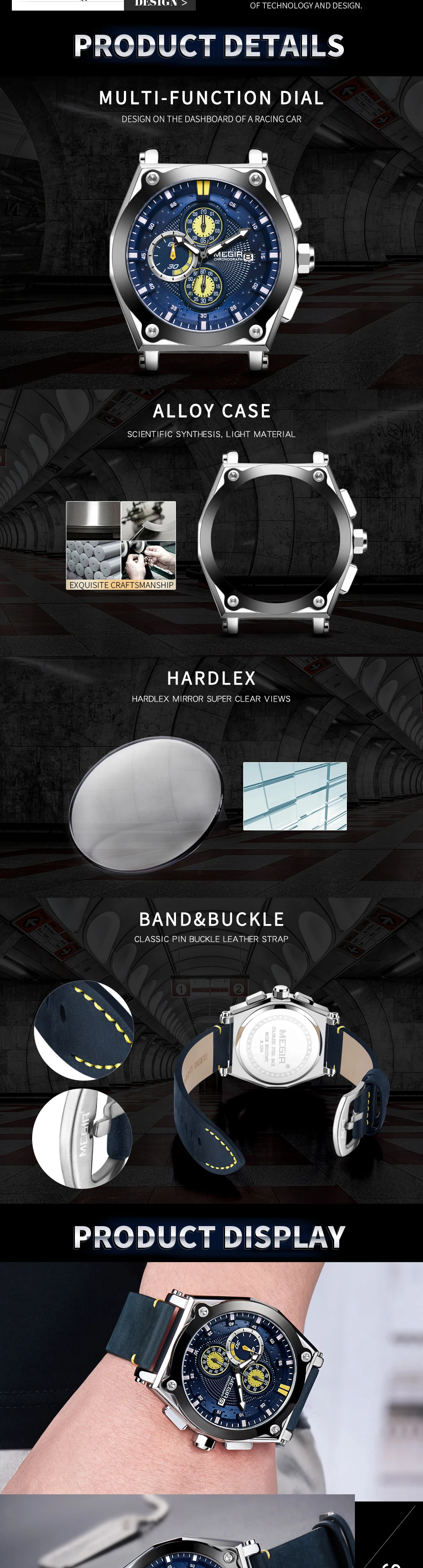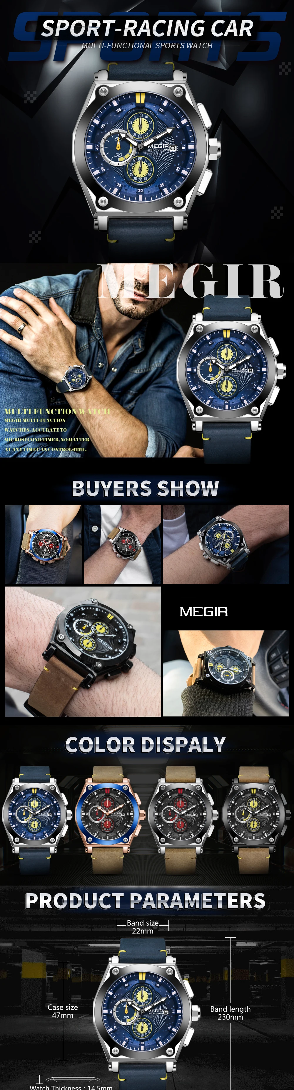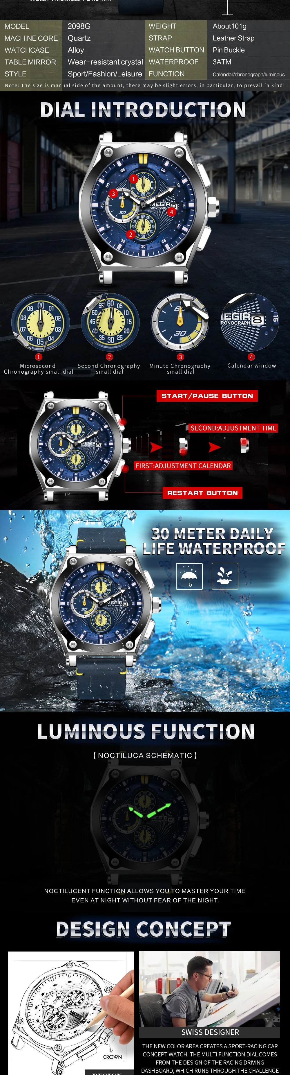 | Name | megir mens chronograph watch reloj hombrej casual alloy sport stylish waterproof quartz watches | ||