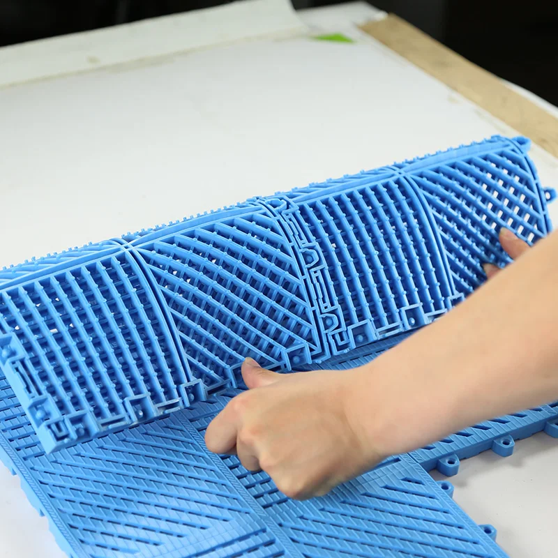Modular interlock design, can be arbitrary combination,easy installation, hydrophobic,and skid resistant,comfortable foot feel.It is made of environmentally friendly PVC material with acid and alkali resistance and cold resisanace.It can be applied to bathroom,swimming pool and so on.