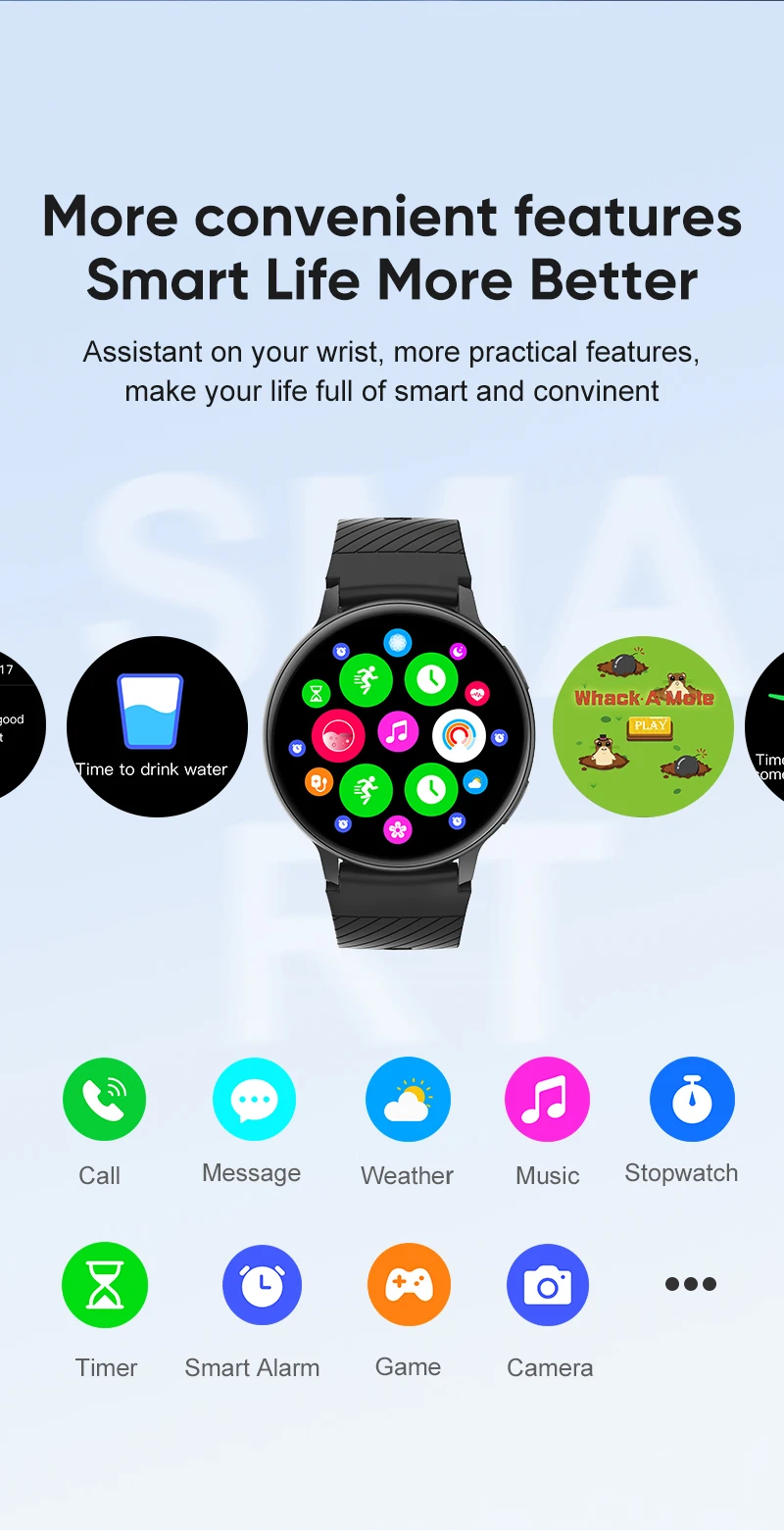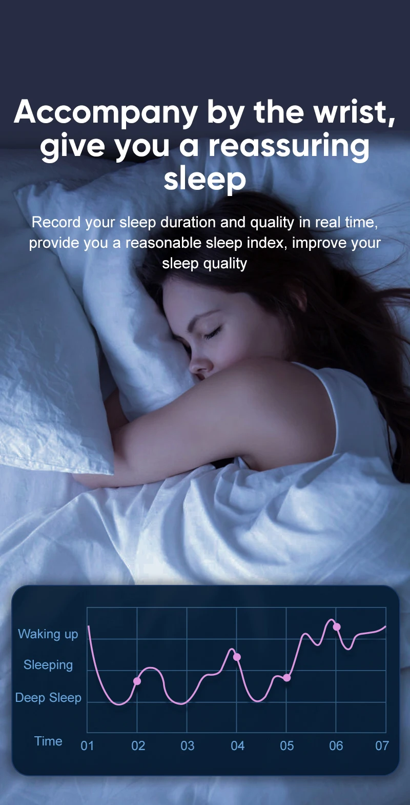 5> Health management: HR, SPo2, BP, Sleep tracking 6> Other function: Stopwatch, weather, alarm clock, photo control, music control, and playback