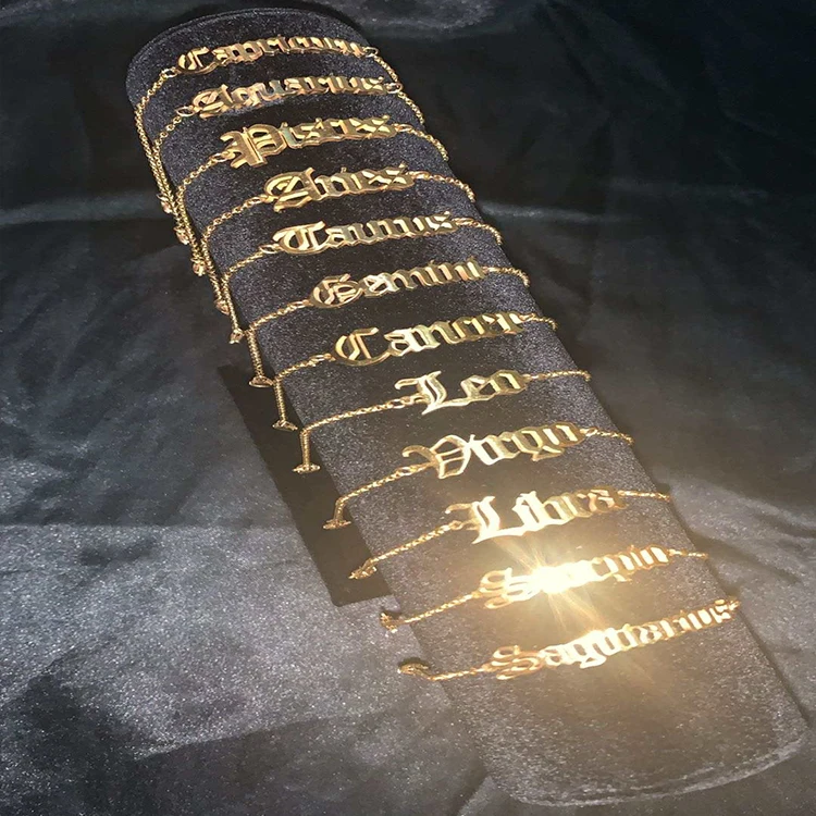 Stainless steel Gold Plated zodiac sign pendant bracelet necklace jewelry set