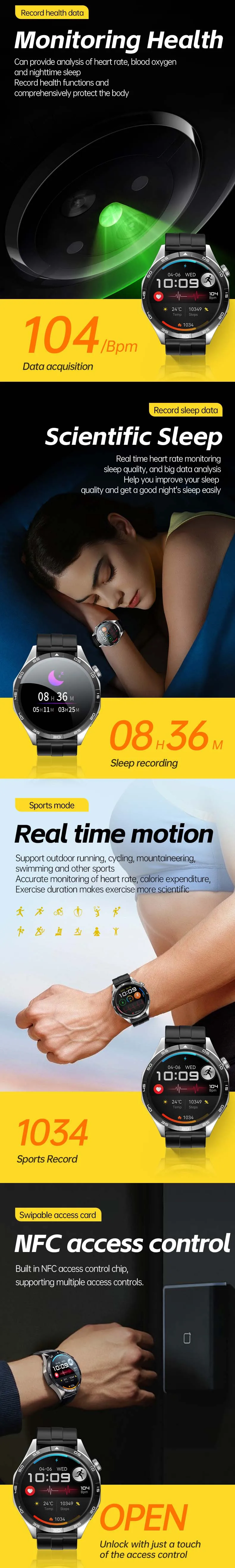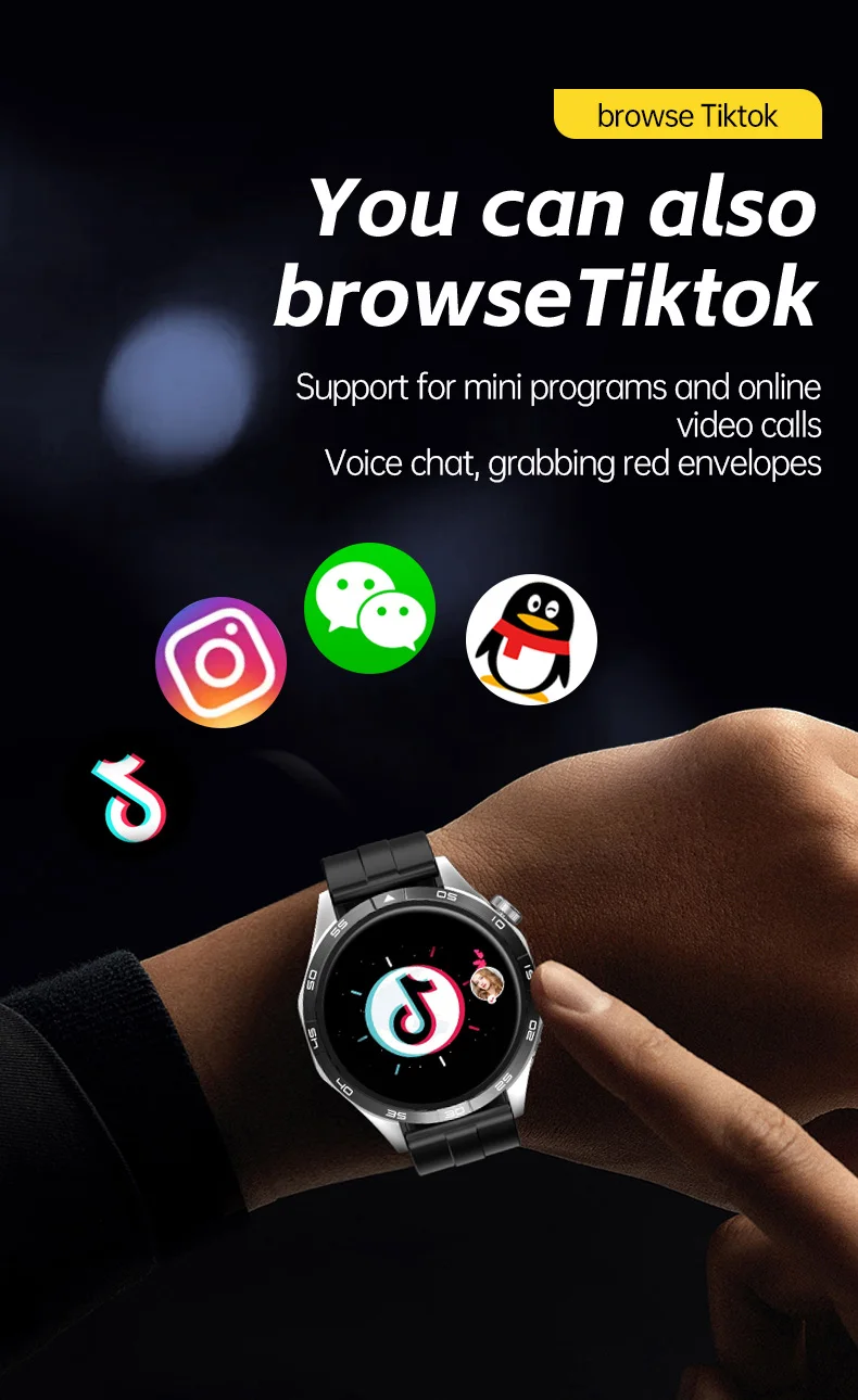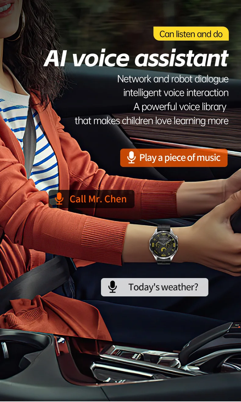 function: chronograph, COMPASS, Calendar, Alarm Clock, Countdown, Noctilucent, Sleep Tracker, Fitness Tracker, Call Reminder, Answer Call, Push Message, Mood Tracker, Message Reminder, Dial Call, Heart Rate Tracker, Gps Navigation, Payment, Activity Tracker, Social Media Notifications, Calorie Tracker, Distance Tracker, Multisport Tracker, Music Player, Sedentary Reminder, SOS button, Video Call, AI voice assistant, Calculators