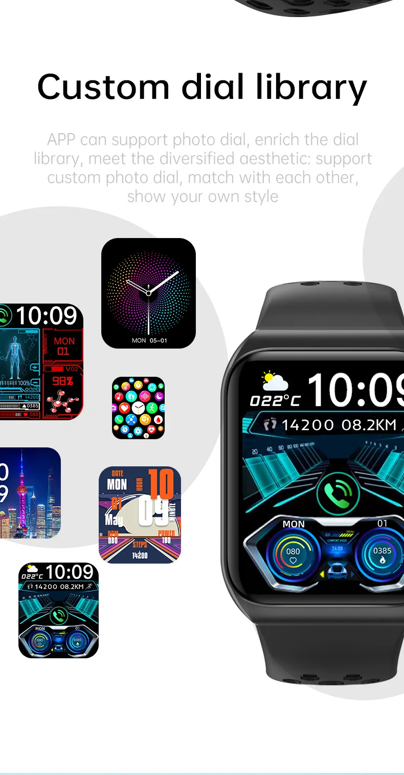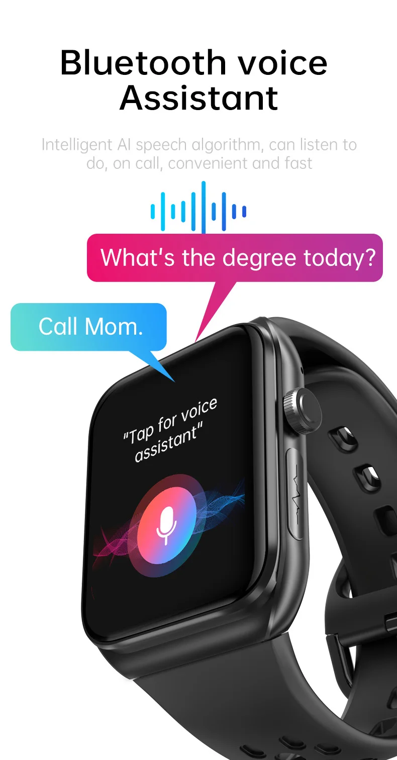 function: chronograph, Calendar, Alarm Clock, Remote Control, Countdown, Sleep Tracker, Fitness Tracker, Passometer, Call Reminder, Answer Call, Push Message, Message Reminder, Dial Call, Heart Rate Tracker, Activity Tracker, Social Media Notifications, Calorie Tracker, Voice Call, Breath Monitor, Distance Tracker, Multisport Tracker, Music Player, Sedentary Reminder, SOS button, Menstrual Management, AI voice assistant