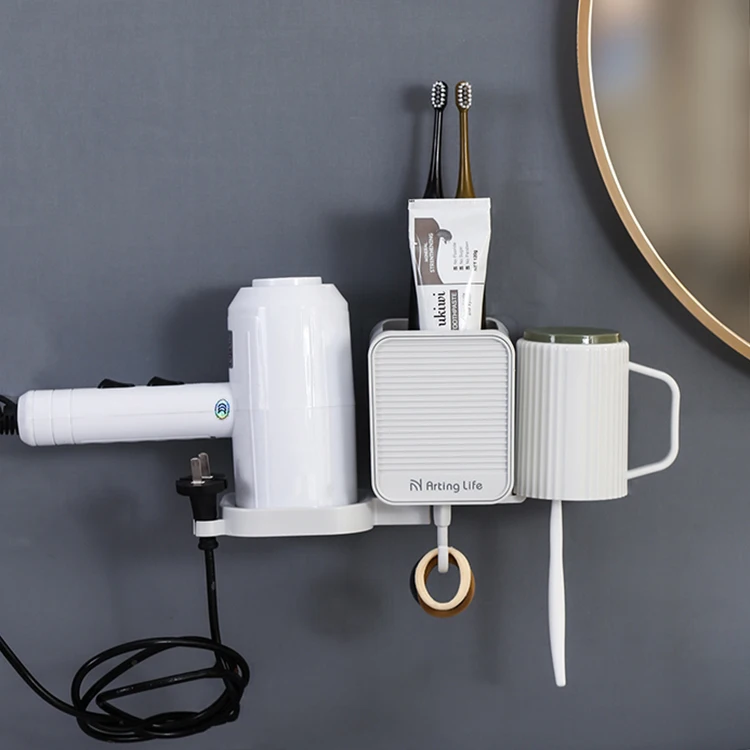Punch free bathroom accessories toothpaste cup hair dryer organizer plastic storage rack electric toothbrush holder wall mounted