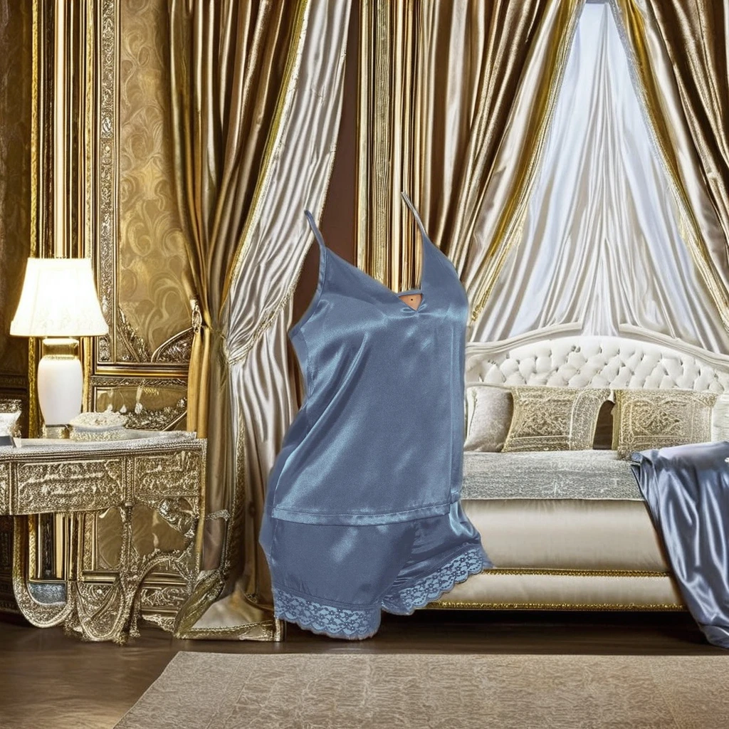 1.Thin and Sexy V-neck Camisole Shorts Casual SleepwearTwo-piece Set is a stylish and comfortable option for the modern woman.